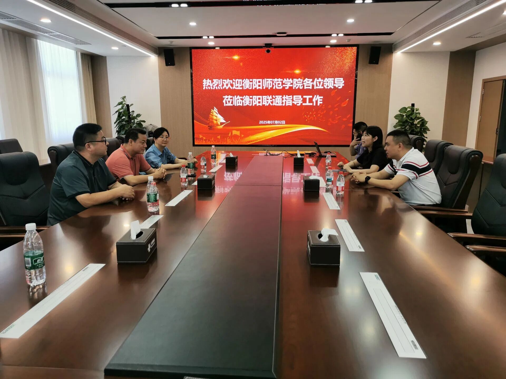 为进一步深化校企合作,拓宽学生就业渠道,2025年7月2日,衡阳师范学院党委委员、副校长魏晓林带队赴中国联通衡阳市分公司开展访企拓岗专项活动,计算机科学与技术学院党总支书记何志红、副书记魏文生一同前往。