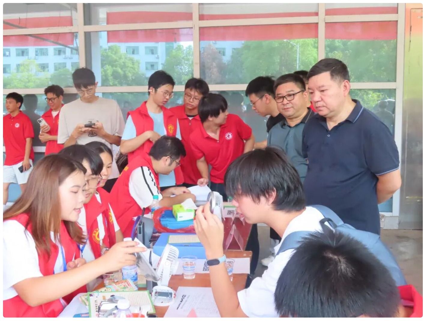 新生报到期间,志愿者们始终保持热情饱满的状态:主动上前接过行李,耐心解答报到手续、校园生活设施等疑问,细致指导新生完成信息登记、生活物资领取等关键环节。遇到携带大件行李的新生,他们更是主动帮忙搬运,一路引导至宿舍。贴心又高效的服务,让“党员迎新服务台”成为迎新季里一道亮眼的“红色风景线”。