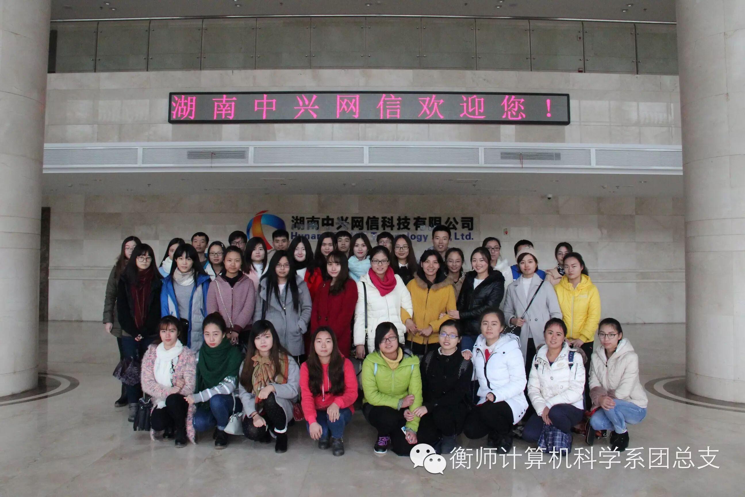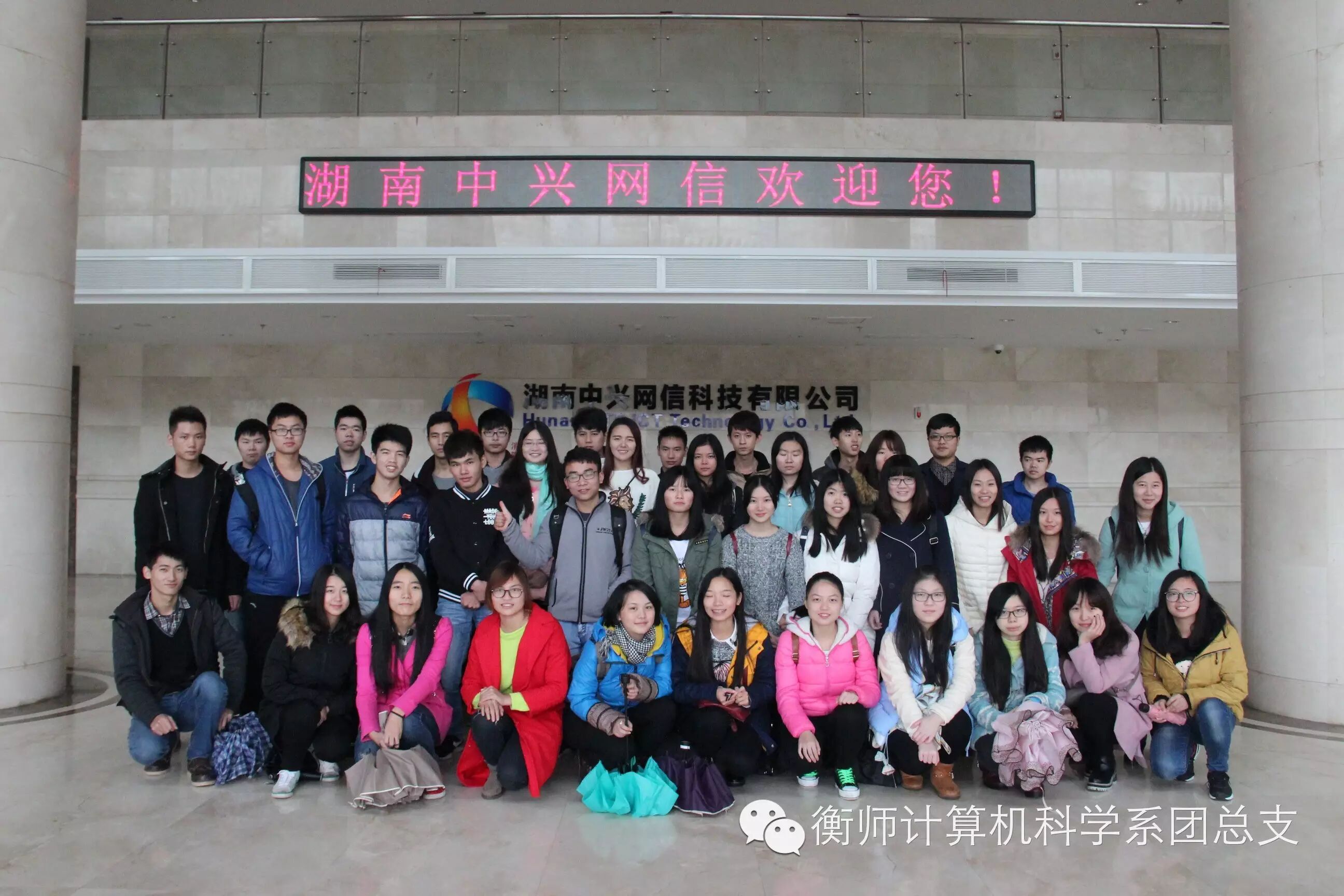 今天,在徐峰老师和学生会干部的带领下,小计有幸到中兴网信科技有限公司见习。不得不说,中兴公司里面真是人才多多啊!先后由两位优秀员工向我们讲解了公司的核心价值观、公司发展史以及公司如今甚至日后的发展方向,改鼓励大家如果有兴趣可以去实习哦。在此,容许小计为中兴打个广告:下载“校青葱”APP,这可是由我们学校和中兴一起研发的呢,希望大家能多多支持啊!(大家千万不要砸我(>_< ))